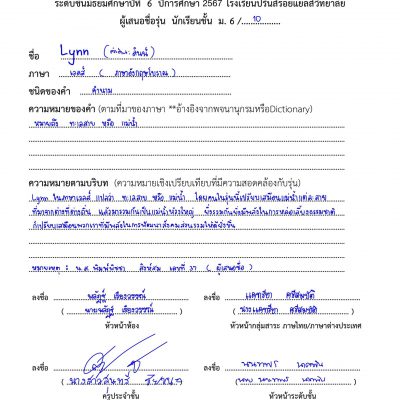 ขอชื่นชมและแสดงความยินดีกับ นางสาวพิมพ์พิชชา  สิงห์สม  ม.6/10   ที่เสนอชื่อรุ่น  และได้รับเลือกจากเพื่อนนักเรียนชั้น ม.6 ให้ใช้ชื่อ  Lynn  เป็นชื่อรุ่นของนักเรียนชั้น ม.6  ปีการศึกษา 2567    เมื่อวันที่  5  มิถุนายน  2567