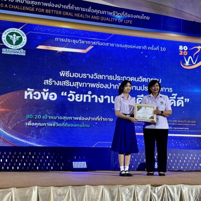 ขอชื่นชมและแสดงความยินดีกับ นางสาวปรียาดา ขามะวัน ม.4/5 ที่ได้รับรางวัล Popular Vote การประกวดนวัตกรรมสร้างเสริมสุขภาพช่องปากในสถานประกอบการ ในงานประชุมวิชาการทันตสาธารณสุขแห่งชาติ ครั้งที่ 10 พ.ศ. 2567 เมื่อวันที่ 19 มิถุนายน 2567 ณ โรงแรมมารวย การ์เด้น กรุงเทพมหานคร จัดโดย สำนักทันตสาธารณสุข กรมอนามัย กระทรวงสาธารณสุข (ระดับประเทศ)