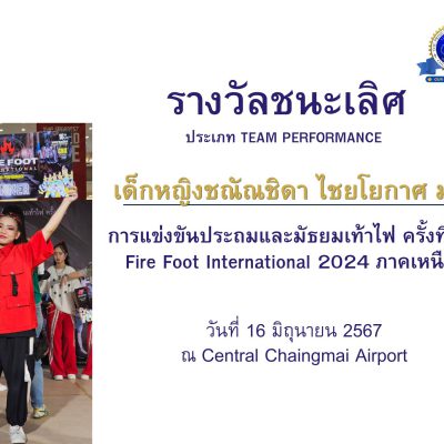 เด็กหญิงชณัณชิดา ไชยโยกาศ รางวัลชนะเลิศ การแข่งขันประถมและมัธยมเท้าไฟ ครั้งที่ 3 Fire Foot International 2024 ภาคเหนือ