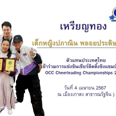 ขอชื่นชมและร่วมแสดงความยินดีกับ เด็กหญิงปภาณิน พลอยประดิษฐ์ นักเรียนชั้นมัธยมศึกษาปีที่ 1/5 เป็นตัวแทนประเทศไทยเข้าร่วมการแข่งขันได้รับรางวัลชนะเลิศเหรียญทองแชมป์เอเชีย 2 รายการ ได้แก่ Cheer Dance Team Junior 2 และ Urban Cheer Dance Team Junior 2 ในการแข่งขันเชียร์ลีดดิ้งชิงแชมป์เอเชีย OCC Cheerleading Championships 2024 เมื่อวันที่ 4 เมษายน 2567 ณ เมืองเกาสง สาธารณรัฐจีน