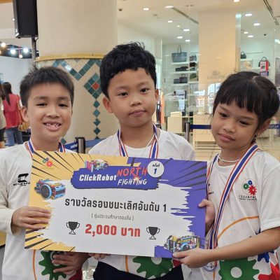 จากทีม CNX SFY ได้รับรางวัลรองชนะเลิศอันดับที่ 1 รุ่นประถมศึกษาตอนต้น ในการแข่งขัน ClickRobot North Fighting ครั้งที่ 1 – การแข่งขัน 4 ภูมิภาคทั่วไทย จัดโดย ClickRobot Engineer Learning Center ณ ห้างสรรพสินค้า Centralplaza Chiangmai Airport เมื่อวันอาทิตย์ ที่ 7 กรกฎาคม 2567