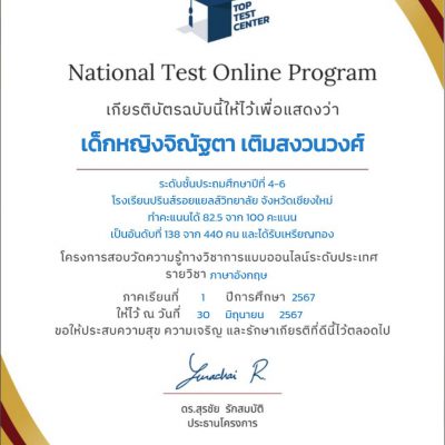 ที่ได้รับรางวัลเหรียญทองวิชาภาษาอังกฤษ และ รางวัลหรียญทองแดง วิชาคณิตศาสตร์