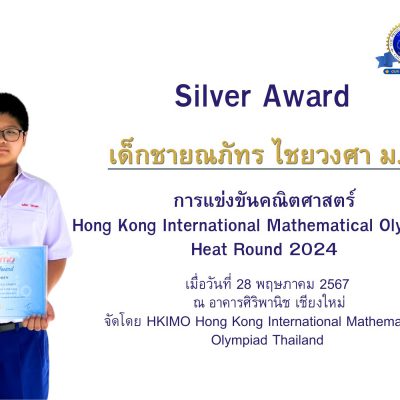เด็กชายณภัทร ไชยวงศา รางวัล Silver Award การแข่งขันคณิตศาสตร์ รายการ Hong Kong International Mathematical Olympiad Heat Round 2024