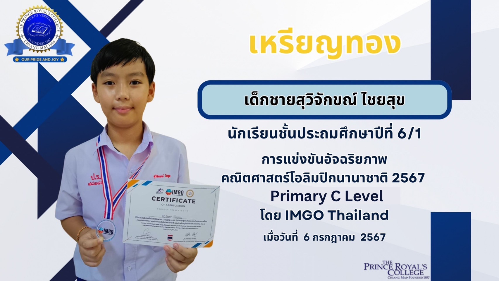 ขอแสดงความยินดีกับ เด็กชายสุวิจักขณ์ ไชยสุข นักเรียนชั้นประถมศึกษาปีที่ 6