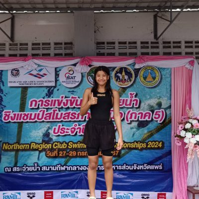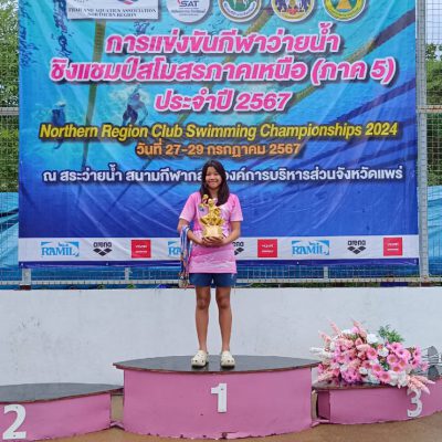 จากการได้รับรางวัลชนะเลิศอันดับที่ 1 การแข่งขันว่ายน้ำชิงแชมป์สโมสรภาคเหนือ 2567 รุ่น 12 ปี หญิง จัดโดยองค์การบริหารส่วนจังหวัดแพร่ ณ สนามกีฬากลาง จังหวัดแพร่