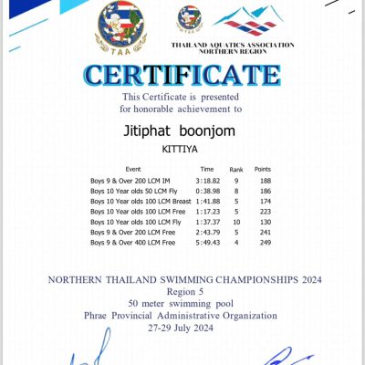 จากการแข่งขันกีฬาว่ายน้ำชิงแชมป์สโมสร ภาคเหนือ (ภาค5) ประจำปี 2567