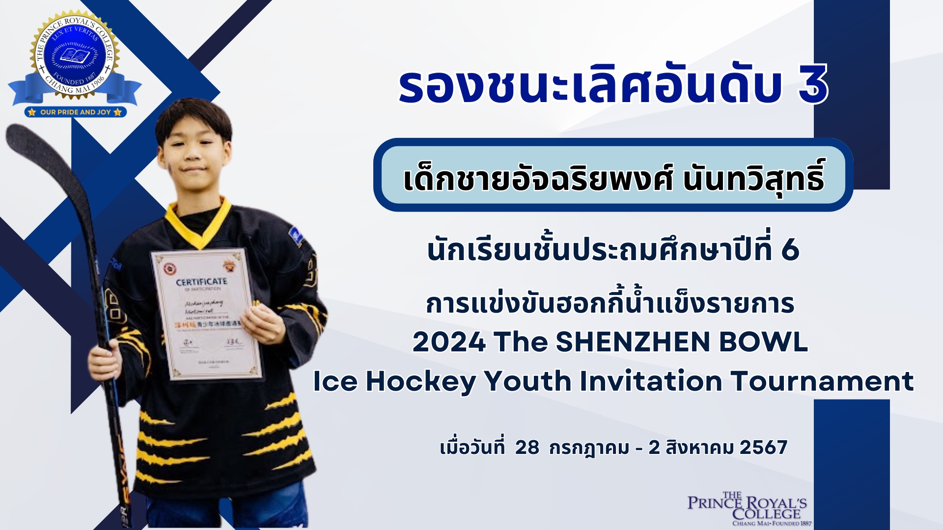 เด็กชายอัจฉริยพงศ์ นันทวิสุทธิ์ รองชนะเลิศอันดับ 3  2024 The SHENZHEN BOWL Ice Hockey Youth Invitation Tournament