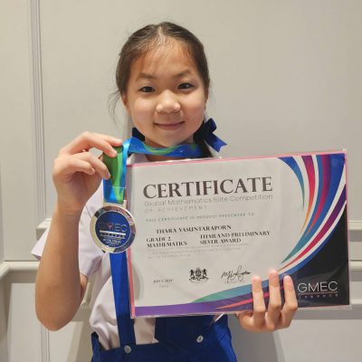 ได้รับรางวัล เหรียญเงิน (Silver)ในการแข่งขัน Global Elite Mathematics Competition (GMEC) THAILAND 2024 ประเภท Grade 2 รอบ Preliminary (online) ระดับประเทศ เมื่อวันที่ 6 มิถุนายน 2567 จัดโดย GMEC Hongkong