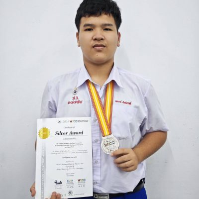 ขอชื่นชมและแสดงความยินดีกับ นายณกรณ์ สันต์สวัสดิ์ ม.6/5 ที่ได้รับรางวัลเหรียญเงิน ประเภททีม จากการแข่งขันนวัตกรรมในงาน 13th 2024 World Invention Creativity Olympic & Conference ชื่อการแข่งขัน WICO World Invention Creativity Olympic 2024 เมื่อวันที่ 23 – 24 กรกฎาคม 2567 ณ The Grand Hall of Seal National University of Education จัดโดย Korea university Invention Association (ระดับนานาชาติ)