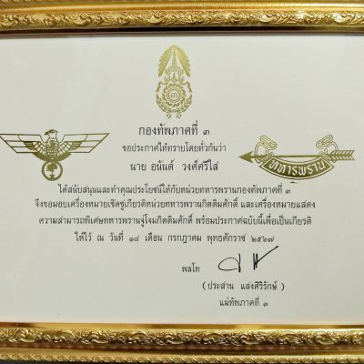 มอบเกียรติบัตร ผู้สนับสนุนและทำคุณประโยชน์ให้กับหน่วยททารพรานกองทัพภาคที่ ๓