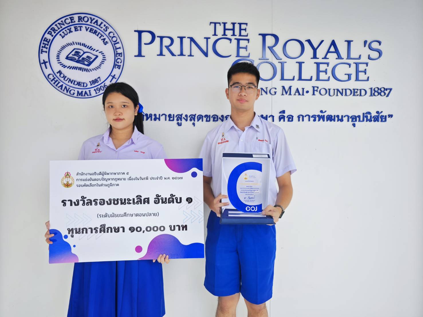 ขอชื่นชมและแสดงความยินดีกับ นายทัพพสาร อิ่มใจ ม.6/8 และ นางสาวกิตติญา กองมูล ม.6/11 ที่ได้รับรางวัลรองชนะเลิศ อันดับ 1 พร้อมโล่รางวัล เงินรางวัล 10,000 บาท และเกียรติบัตร จากการแข่งขันตอบปัญหากฎหมาย เนื่องในวันรพี ประจำปี 2567 รอบคัดเลือก (ส่วนภูมิภาค) วันที่ 16 สิงหาคม 2567 ณ ห้องเชียงแสน ศูนย์ประชุมนานาชาติคุ้มคำ จัดโดย สำนักงานอธิบดีผู้พิพากษาภาค 5 จังหวัดเชียงใหม่ นอกจากนี้นักเรียนยังได้เป็นตัวแทนภาคเหนือ เข้าร่วมการแข่งขันระดับประเทศต่อไป (ระดับภาค)