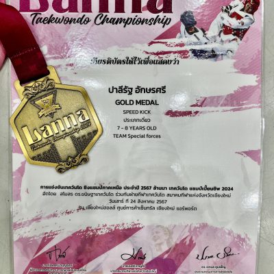 ขอชื่นชมและร่วมแสดงความยินดีกับ เด็กชายปาลีรัฐ อักษรศรี นักเรียนชั้นประถมศึกษาปีที่ 2/4 ได้รางวัลชนะเลิศ เหรียญทอง รายการ Speed Kick ประเภทเดี่ยว รุ่นยุวชน อายุ 7 – 8 ปี ในการแข่งขันกีฬาเทควันโดชิงแชมป์ภาคเหนือ ล้านนาเทควันโดแชมป์เปี้ยนชิพ “Lanna Tae Kwon Do Championship 2024 ปี 2567” จัดโดย สโมสรขนิษฐาเทควันโด ร่วมกับฝ่ายกีฬาเทควันโด สมาคมกีฬาแห่งจังหวัดเชียงใหม่ ณ เชียงใหม่ฮอลล์ ศูนย์การค้าเซ็นทรัลเชียงใหม่แอร์พอร์ต เมื่อวันเสาร์ที่ 24 สิงหาคม 2567