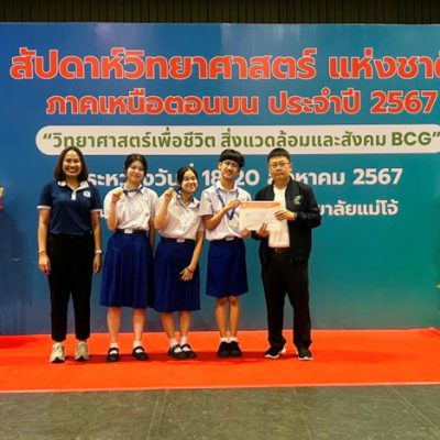 ขอชื่นชมและแสดงความยินดีกับทีมนักเรียน PRC  ที่ได้รับรางวัลจากการแข่งขันโครงงานวิทยาศาสตร์ ระดับมัธยมศึกษาตอนปลาย  ในงานสัปดาห์วันวิทยาศาสตร์แห่งชาติ ภาคเหนือตอนบน ประจำปี 2567 ระหว่างวันที่ 18 – 20 สิงหาคม 2567  ณ คณะวิทยาศาสตร์ มหาวิทยาลัยแม่โจ้  จัดโดย คณะวิทยาศาสตร์ มหาวิทยาลัยแม่โจ้
