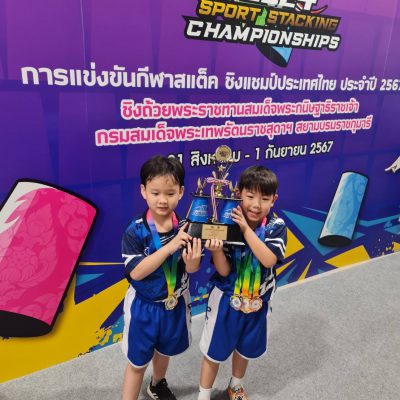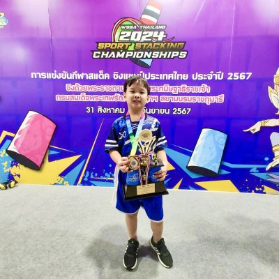ขอชื่นชมและแสดงความยินดีกับเด็กชายฐปนวัฒน์ เจียสวัสดิ์ อนุบาล 3/11 ได้รับรางวัลเหรียญทองและถ้วยพระราชทานในการแข่งขันกีฬาสแต็ค ประเภทคู่ รุ่นอายุ 6 ปี จากการแข่งขันชิงแชมป์ประเทศไทย ประจำปี 2567 “WSSA 2024 Thailand Sport Stacking Championship” ชิงถ้วยพระราชทานสมเด็จพระกนิษฐาธิราชเจ้า กรมสมเด็จพระเทพรัตนราชสุดาฯ สยามบรมราชกุมารี เมื่อวันทึ่ 31 สิงหาคม – 1 กันยายน 2567 ณ ลานกิจกรรม ชั้น 1 ศูนย์การค้าพาราไดซ์เพลส จังหวัดกรุงเทพมหานครฯ