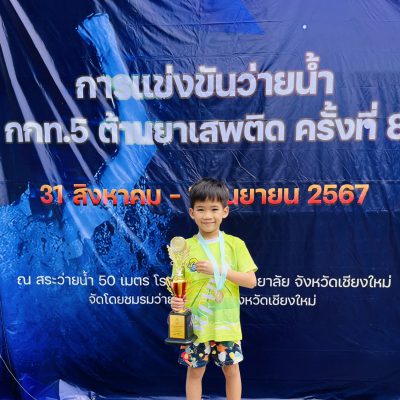 จาการแข่งขันว่ายน้ำ กกท.5 ต้านยาเสพติด ครั้งที่ 8 เมื่อวันที่ 31 สิงหาคม – 1 กันยายน พ.ศ. 2567 ณ สระว่ายน้ำ 50 เมตร โรงเรียนกาวิละวิทยาลัย จังหวัดเชียงใหม่