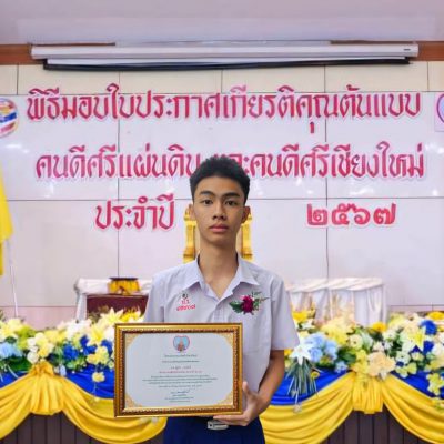 ขอชื่นชมและแสดงความยินดีกับ นายณัฐรณ เอกฉันท์ ม.4/1 ที่ได้รับใบประกาศเกียรติคุณรางวัลคนดีศรีเชียงใหม่ ประจำปี 2567 ในพิธีมอบประกาศเกียรติคุณต้นแบบคนดีศรีแผ่นดิน-คนดีศรีเชียงใหม่ ครบรอบ 21 ปี 2567 ครั้งที่ 2 เมื่อวันเสาร์ที่ 24 สิงหาคม 2567 ณ หอประชุมมหาวิทยาลัยฟาร์อิสเทอร์น จัดโดย โครงการคนดีศรีเชียงใหม่และชมรมอนุรักษ์วัฒนธรรมประเพณีท้องถิ่นเชียงใหม่ (ระดับจังหวัด)