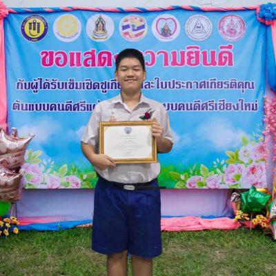 ขอชื่นชมและแสดงความยินดีกับ นายณัฏฐพัชร์ สิริสว่างเมฆ ม.4/7 ที่ได้รับใบประกาศเกียรติคุณรางวัลคนดีศรีเชียงใหม่ ประจำปี 2567 ในพิธีมอบประกาศเกียรติคุณต้นแบบคนดีศรีแผ่นดิน-คนดีศรีเชียงใหม่ ครบรอบ 21 ปี 2567 ครั้งที่ 2 เมื่อวันเสาร์ที่ 24 สิงหาคม 2567 ณ หอประชุมมหาวิทยาลัยฟาร์อิสเทอร์น จัดโดย โครงการคนดีศรีเชียงใหม่และชมรมอนุรักษ์วัฒนธรรมประเพณีท้องถิ่นเชียงใหม่ (ระดับจังหวัด)