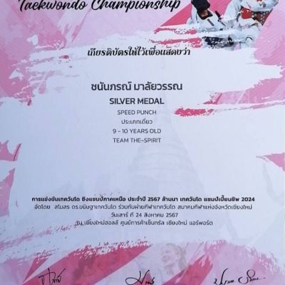 - รางวัลเหรียญเงิน (SIVER MEDAL) SPEED PUNCH ประเภทเดี่ยว 9-10 YEARS OLD