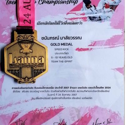 - รางวัลเหรียญทอง (GOLD MEDAL) SPEED KICK ประเภทเดี่ยว 9-10 YEARS OLD