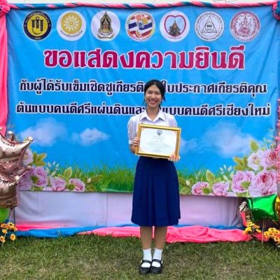 ขอชื่นชมและแสดงความยินดีกับ นางสาวภูษณิศา คงเหลือ ม.5/7 ที่ได้รับใบประกาศเกียรติคุณรางวัลคนดีศรีเชียงใหม่ ประจำปี 2567 ในพิธีมอบประกาศเกียรติคุณต้นแบบคนดีศรีแผ่นดิน-คนดีศรีเชียงใหม่ ครบรอบ 21 ปี พ.ศ.2567 ครั้งที่ 2 เมื่อวันเสาร์ที่ 24 สิงหาคม 2567 ณ หอประชุมมหาวิทยาลัยฟาร์อิสเทอร์น จัดโดย โครงการคนดีศรีเชียงใหม่และชมรมอนุรักษ์วัฒนธรรมประเพณีท้องถิ่นเชียงใหม่ (ระดับจังหวัด)