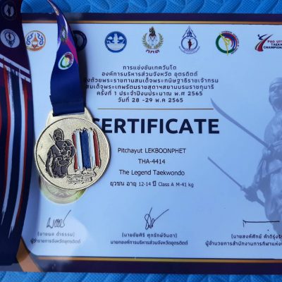 ขอแสดงความยินดีกับเด็กชายพิชญ์ชยุตม์ เหล็กบุญเพชร นักเรียนชั้นมัธยมศึกษาปีที่ 2 ได้รับรางวัลชนะเลิศอันดับ 1 (เหรียญทอง) ในการแข่งขันกีฬาเทควันโด รายการ “อบจ.อุตรดิตถ์ ชิงถ้วยพระราชทานสมเด็จพระกนิษฐาธิราชเจ้า พระเทพรัตนราชสุดาฯ สยามบรมราชกุมารี ครั้งที่ 1” ประจำปีงบประมาณ พ.ศ 2565 วันที่ 28-29 พฤษภาคม 2565 ในรุ่นยุวชนชาย อายุ 12-14 ปี น้ำหนักไม่เกิน 41 กิโลกรัม