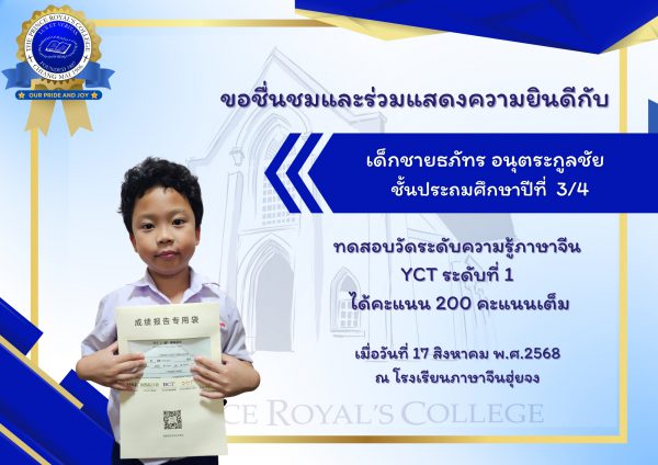 ขอชื่นชมและร่วมแสดงความยินดีกับ เด็กชายศิววัฒน์ ยิ้มโกศล ชั้นประถมศึกษาปีที่ 3/3 ได้รับรางวัล ชมเชย วิชาคณิตศาสตร์ และ วิชาภาษาอังกฤษ จากรายการที่ไปแข่ง ASMOPSS THAILAND 2025 การแข่งขันวิชาการระดับชาติและนานาชาติรอบความเป็นเลิศระดับประเทศ Asian Science and Mathematics Olympiad for Primary and Secondary Schools