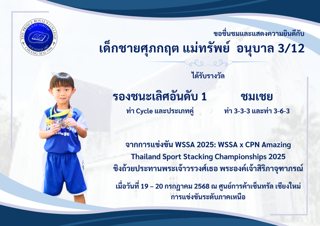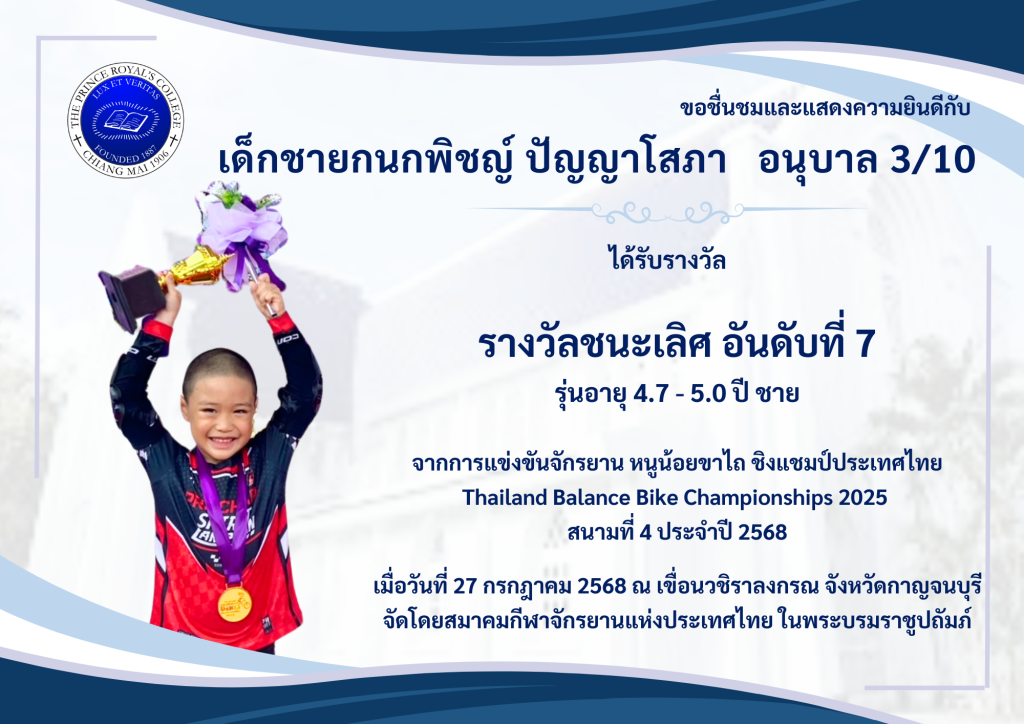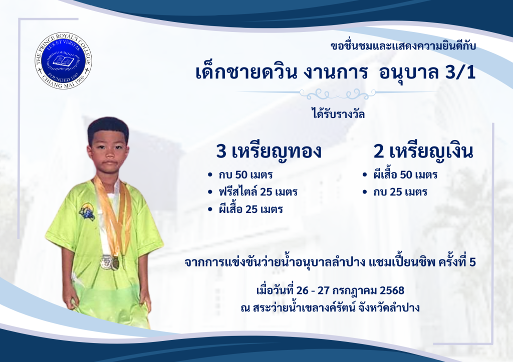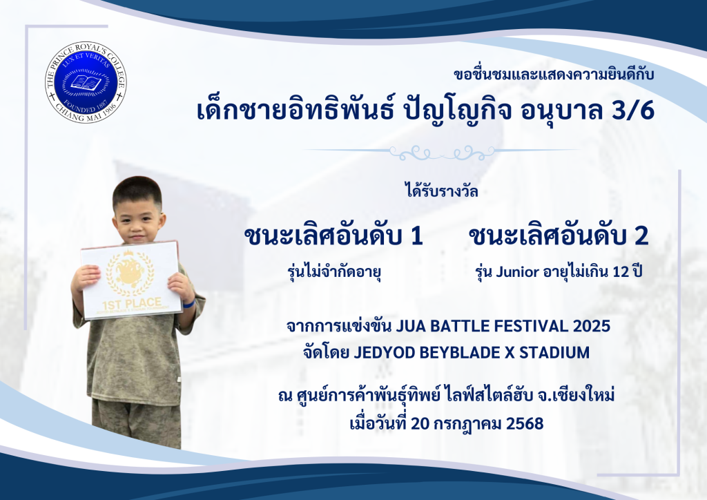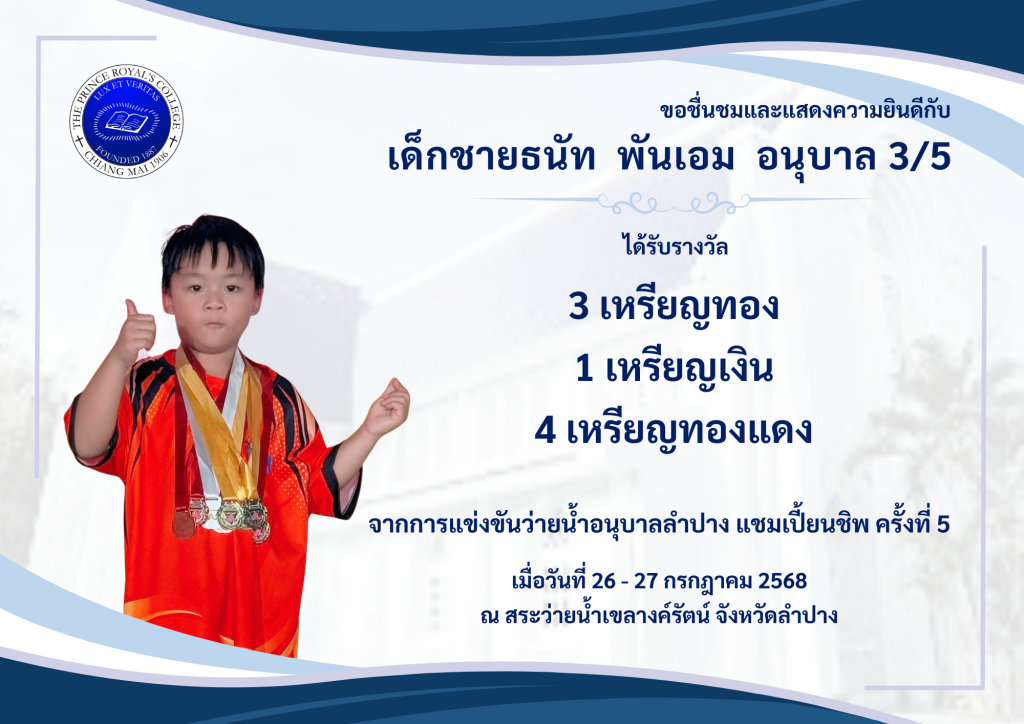 ขอชื่นชมและแสดงความยินดีกับ เด็กชายอิทธิพันธ์ ปัญโญกิจ […]