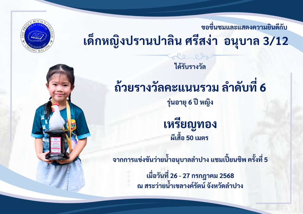 ขอชื่นชมและแสดงความยินดีกับ เด็กหญิงปรานปาลิน ศรีสง่า […]