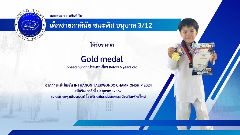 เด็กชายภาคินัย ชนะพิศ รางวัลการแข่งขันเทควันโด