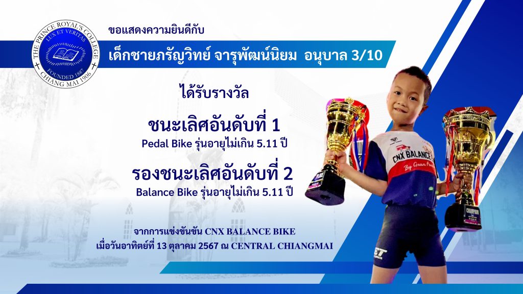 เด็กชายภรัญวิทย์ จารุพัฒน์นิยม รางวัลการแข่งขัน 𝐂𝐍𝐗 𝐁𝐀𝐋𝐀𝐍𝐂𝐄 𝐁𝐈𝐊𝐄