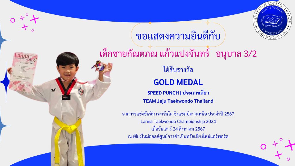เด็กชายกัณตภณ แก้วแปงจันทร์ รางวัลการแข่งขันเทควันโด