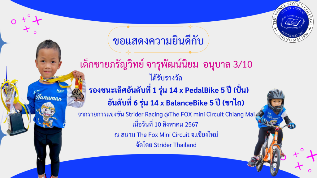 เด็กชายปุณณเกียรติ์ เปรมปิติกูลวัฒนา รางวัลการแข่งขัน 𝐂𝐍𝐗 𝐁𝐀𝐋𝐀𝐍𝐂𝐄 𝐁𝐈𝐊𝐄