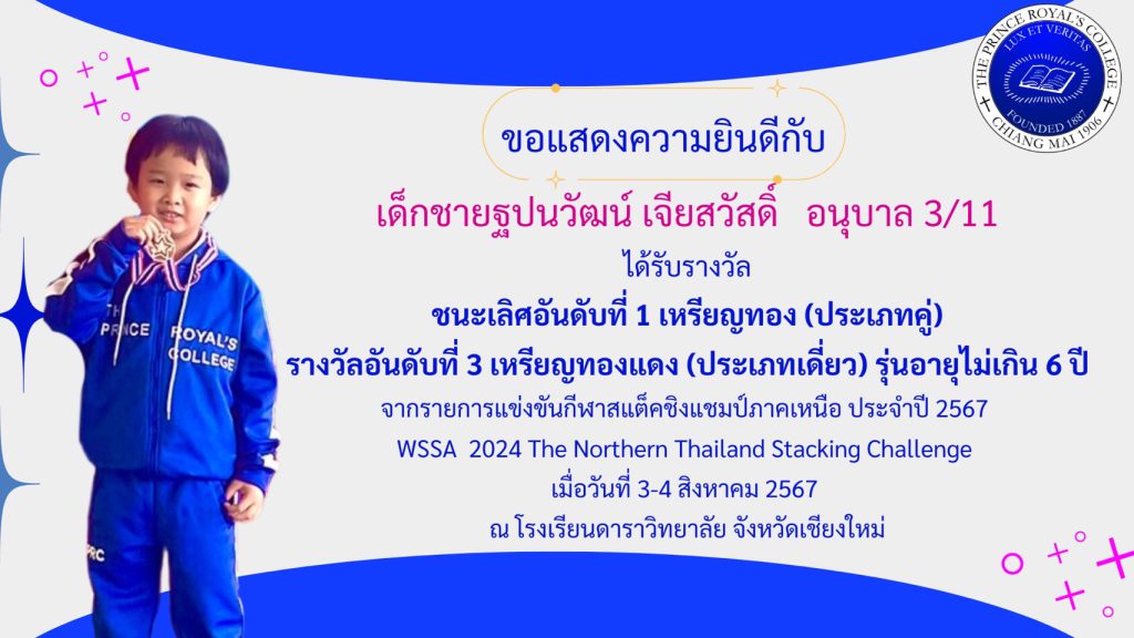 เด็กชายฐปนวัฒน์ เจียสวัสดิ์ รางวัลการแข่งขันกีฬาสแต็คชิงแชมป์ภาคเหนือ ประจำปี 2567