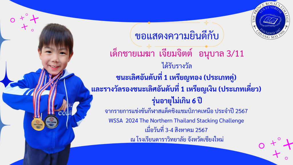เด็กชายเมฆา เจียมจิตต์ รางวัลการแข่งขันกีฬาสแต็คชิงแชมป์ภาคเหนือ ประจำปี 2567