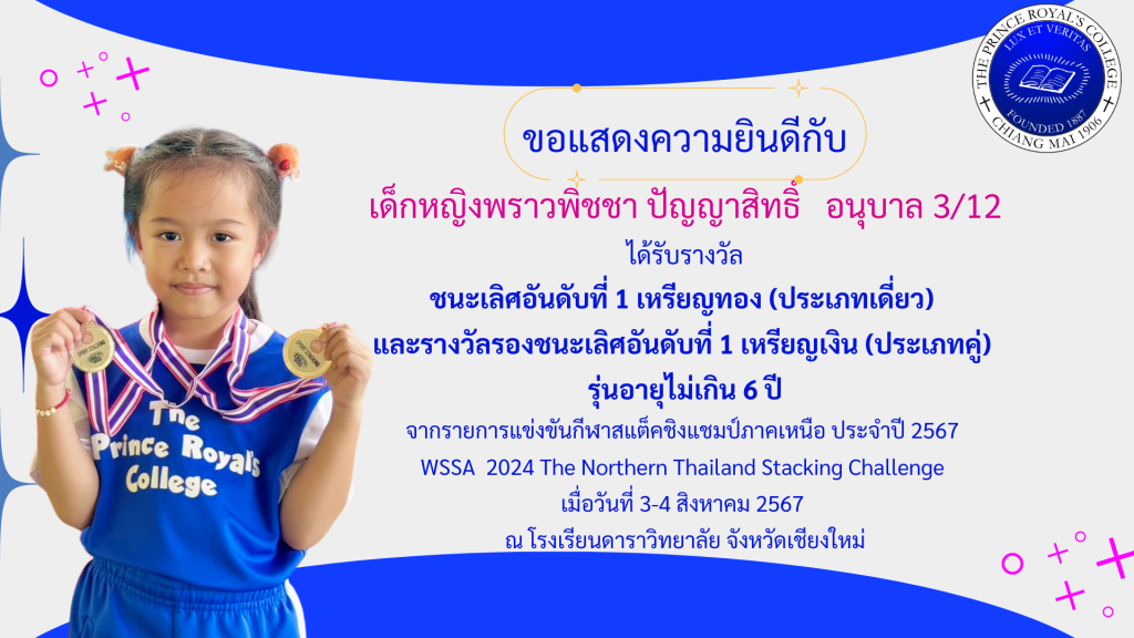 เด็กหญิงพราวพิชชา ปัญญาสิทธิ์ รางวัลการแข่งขันกีฬาสแต็คชิงแชมป์ภาคเหนือ ประจำปี 2567