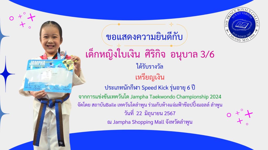 เด็กหญิงใบเงิน ศิริกิจ รางวัลการแข่งขันเทควันโด Jampha Championship 2024