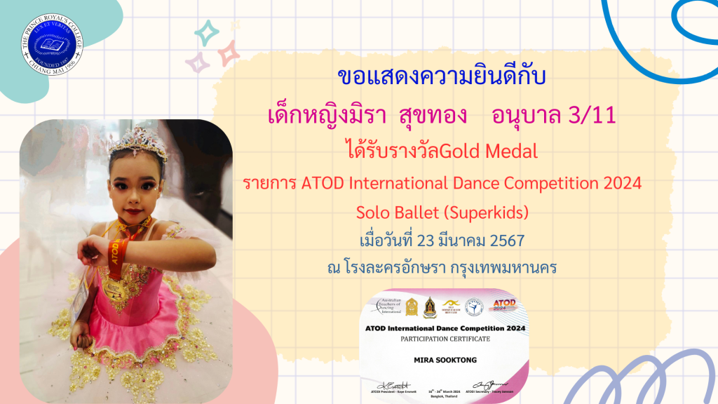 เด็กหญิงมิรา สุขทอง การแข่งขันรายการ ATOD International Dance Competition 2024 Solo Ballet (Superkids)