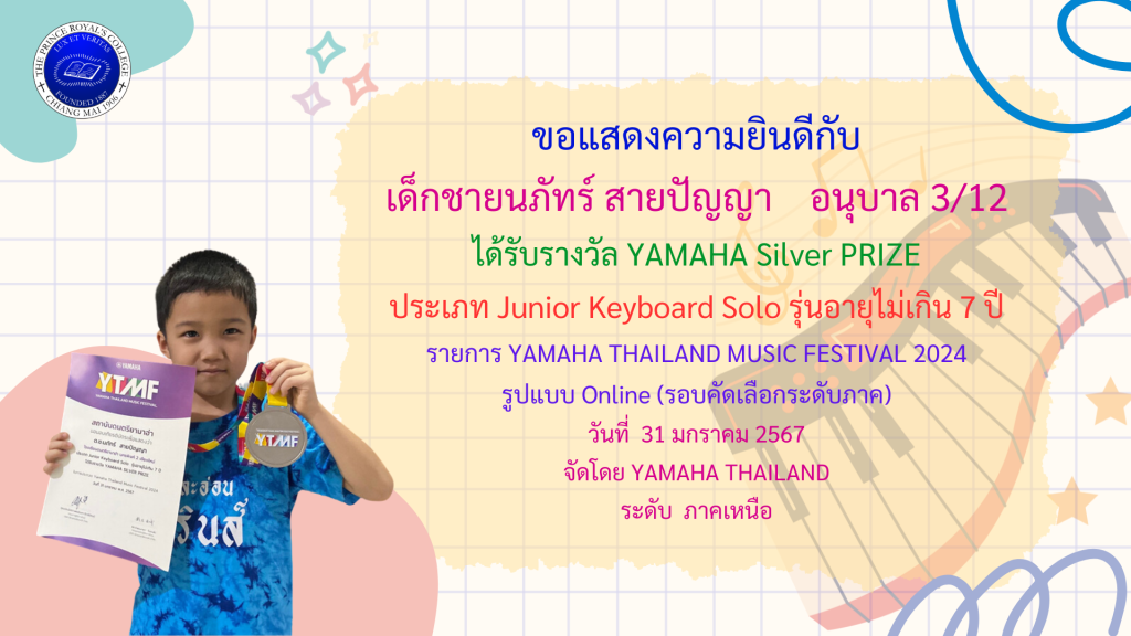เด็กชายนภัทร์ สายปัญญา รางวัล รายการ YAMAHA THAILAND MUSIC FESTIVAL 2024