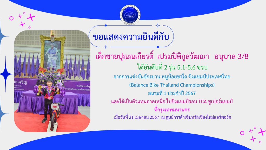 เด็กชายปุณณเกียรติ์ เปรมปิติกูลวัฒนา รางวัลการแข่งขันจักรยาน หนูน้อยขาไถ ชิงแชมป์ประเทศไทย