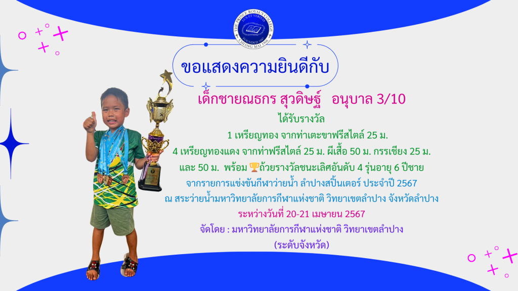 ขอชื่นชมและแสดงความยินดีกับเด็กชายวาริช ขุนจินดา อนุบาล […]