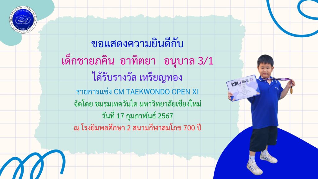 เด็กชายภคิน อาทิตยา รางวัลการแข่งขันเทควันโด