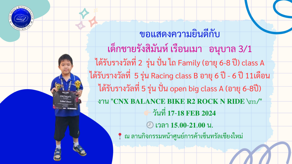 ขอชื่นชมและแสดงความยินดีกับเด็กชายสิรินทร์ เสียงหวาน อน […]