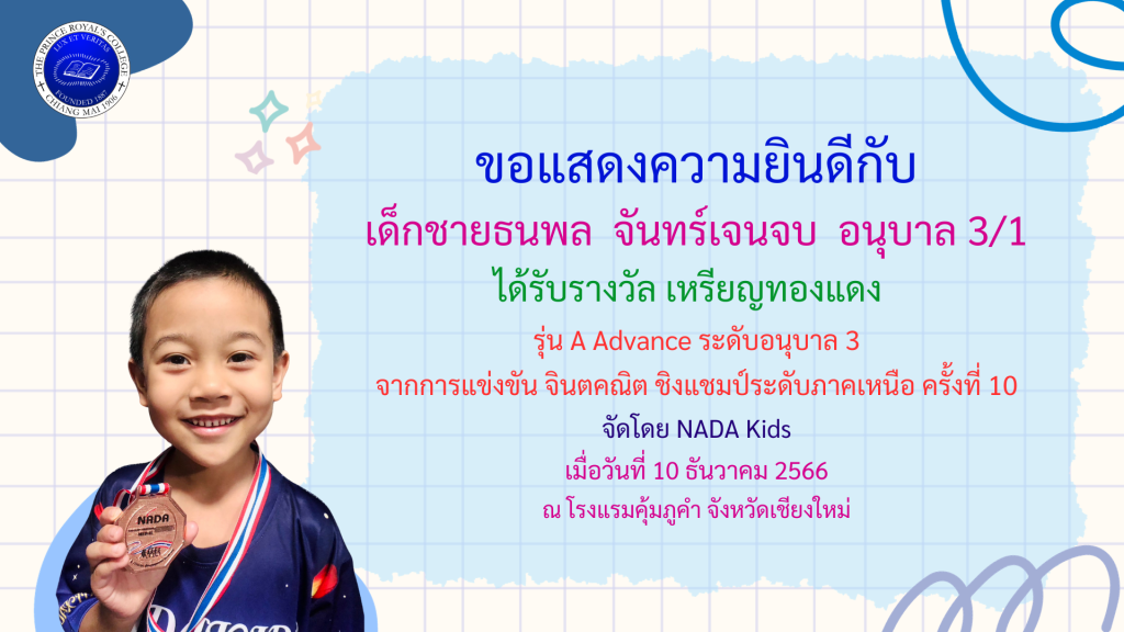 เด็กชายธนพล จันทร์เจนจบ รางวัลการแข่งขันจินตนาคณิต ระดับภาคเหนือ ครั้งที่ 10 NADA KIDS