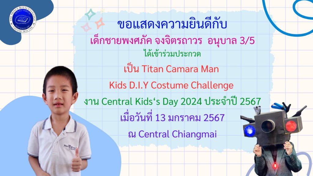 เด็กชายพงศภัค จงจิตรถาวร รางวัลเข้าร่วมการประกวดงาน Central Kid’s Day 2024 ประจำปี 2567