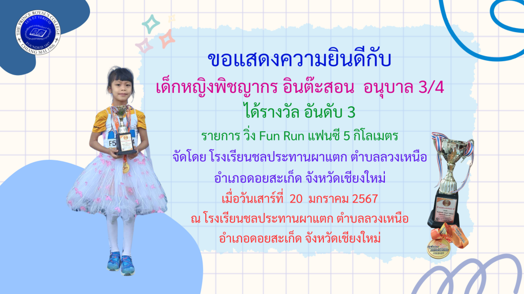 ขอชื่นชมและแสดงความยินดีกับเด็กหญิงพิชญากร อินต๊ะสอน อน […]