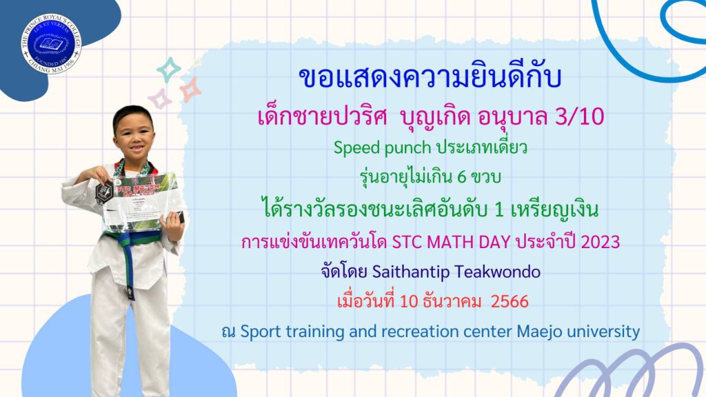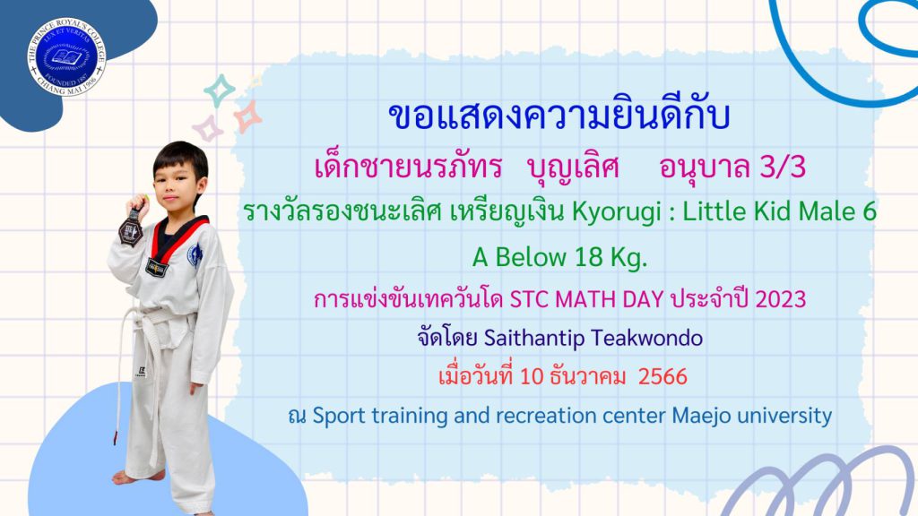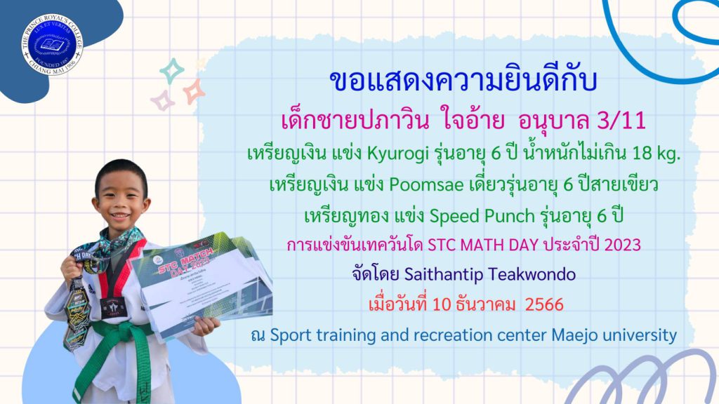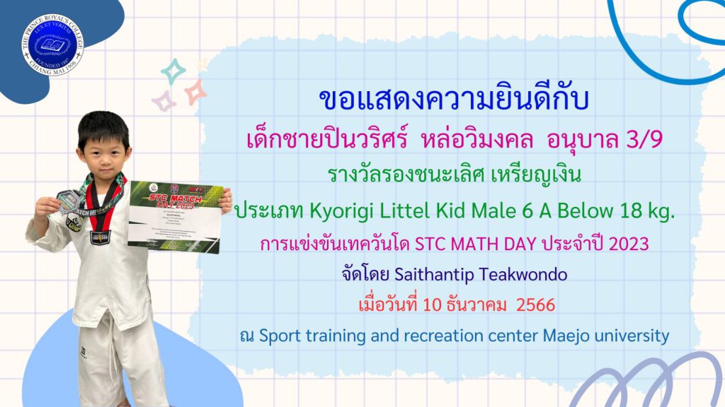 ขอชื่นชมและแสดงความยินดีกับเด็กชายปินวริศร์ หล่อวิมงคล […]