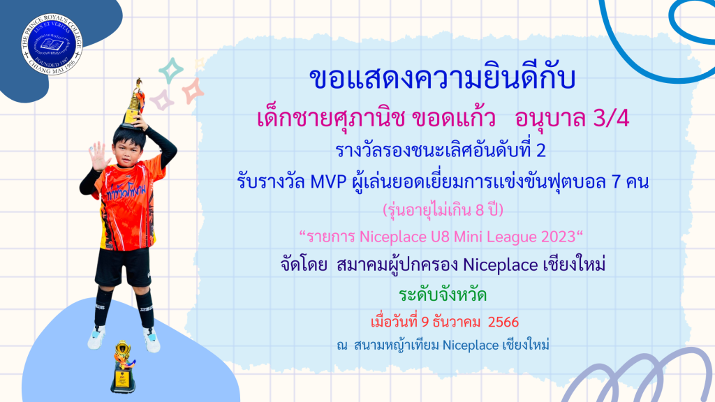 เด็กชายศุภานิช ขอดแก้ว รางวัลการแข่งขันฟุตบอล 7 คน (รุ่นอายุไม่เกิน 8 ปี)