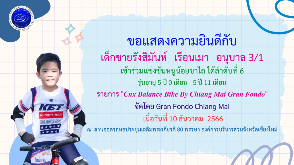 ขอชื่นชมและแสดงความยินดีกับเด็กชายพงศภัค จงจิตรถาวร อนุ […]