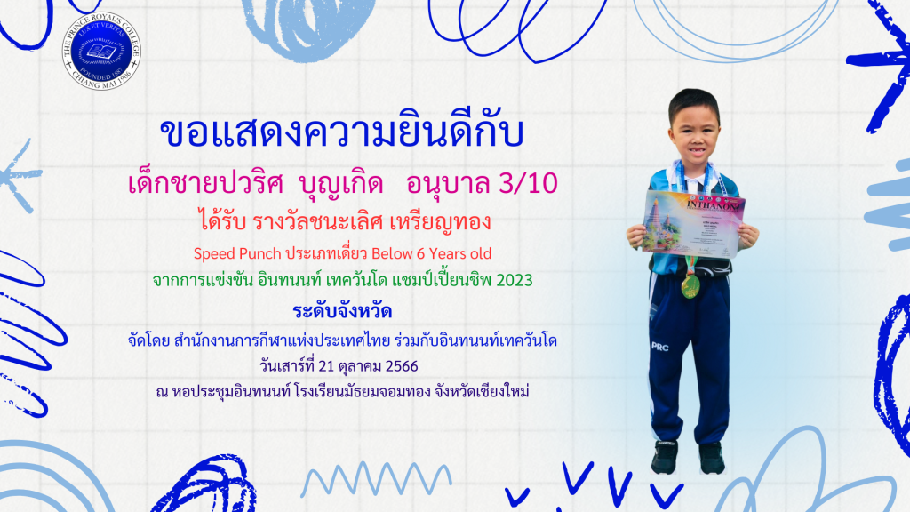 เด็กชายปวริศ บุญเกิด รางวัลการแข่งขันเทควันโด