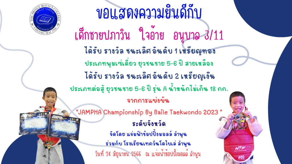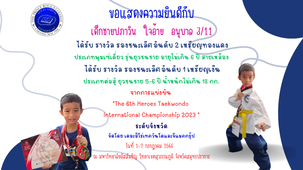 เด็กชายปภาวิน ใจอ้าย รางวัลการแข่งขันเทควันโด